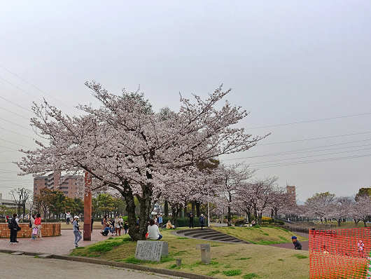 公園内へ入ってみると、ソメイヨシノはかなり開花していて、お花見をする人たちで賑わっていましたが、まだ蕾も多くて7~8分咲のような感じで、今週の日曜日頃が一番見頃の満開となるでしょうね。