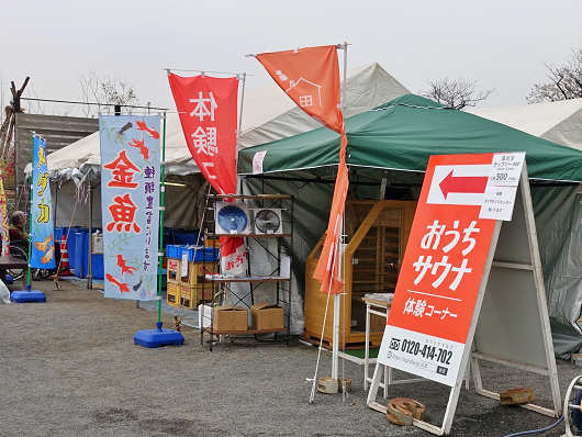 今年はおうちサウナ体験コーナーというのもありました。テント内は覗きませんでしたが、ここでサウナを実際に体験できるんでしょうか?