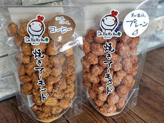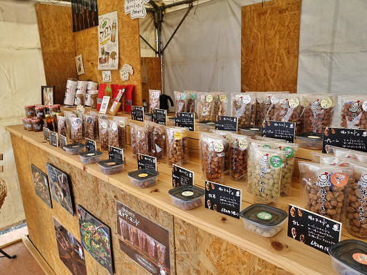テント内には何種類もの焼きアーモンドがずらりと並べられていて、どれを買おうかと迷うほどでした。焼きアーモンドは私もりゅうママもお気に入りのお菓子で、一昨年ここに出店していた時には何度も足を運んで、何種類もの焼きアーモンドを買ったんですよね。