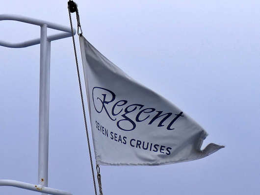 船首部部に掲げられていた旗には、この船を所有しているアメリカのマイアミに本社を置く「レジェント セブンシーズ クルーズ」の社名が書かれていました。