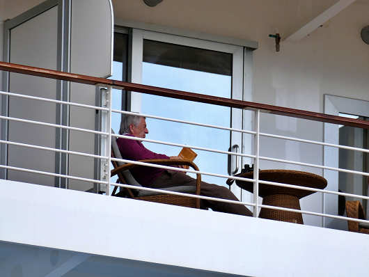 セブン シーズ エクスプローラは、この日の午後10時に出港予定だったので、ほとんど乗船客は別府観光などに出かけていましたが、なかには観光にも行かずにのんびりと読書をしている人もいました。豪華クルーズ船で海外旅行を楽しむような人は、色んな意味で余裕があるのか?することも庶民とは違いますね(笑)
