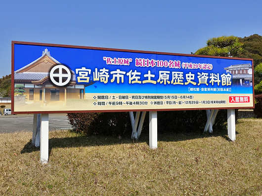 今回の目的地は12月の宮崎旅行の時に寄らなかった「城の駅 佐土原いろは館」を訪れることですが、まずは道路の反対側にある「宮崎市佐土原歴史資料館」に行ってみました。