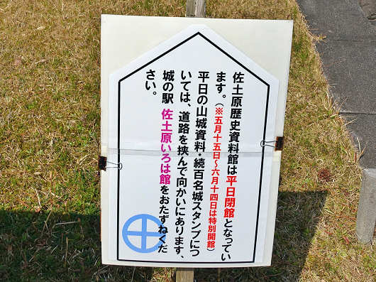 資料館へと続く石段を登ろうとしたら、この様な看板が立てられていて資料館は平日閉館になっていました。この日は残念なことに水曜日で平日だったんですよね。