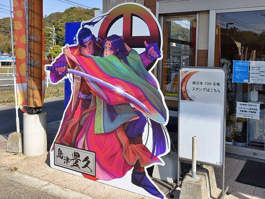 店頭には「島津豊久」と書かれた武将とお姫様?のパネルがありました。島津豊久は佐土原城の城主でしたが、関ヶ原の合戦で敗走する島津軍の殿(しんがり)を務めて、島津軍大将の島津義久の身代わりとなって討ち死にした武将です。そして一説には美少年だったともいわれています。