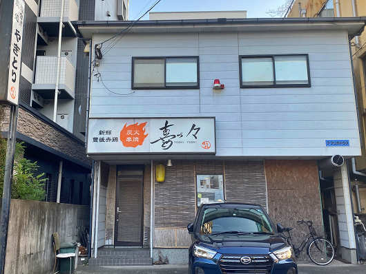 この日訪れたのは大分市都町2丁目の「炭火串焼き 喜々(よしよし)」です。都町といえば大分県一の歓楽街ですが、このお店は都町のネオン街の北の外れにあります。