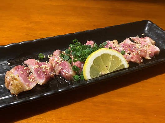 タタキです。全く臭みが無くて、表面は適度な歯応えがあって、肉は柔らかいとても美味しいタタキでした。