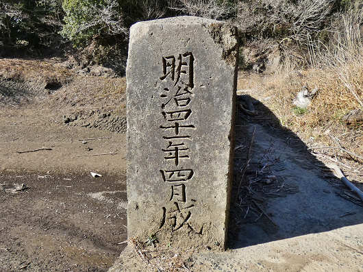 石橋の欄干部分には「たしろ橋」と「明治四十一年四月成」と刻まれていました。今回は田代橋が姿を現してからの期間が長かったのか?橋の上に堆積した土砂から生えた雑草が枯れ残っていました。