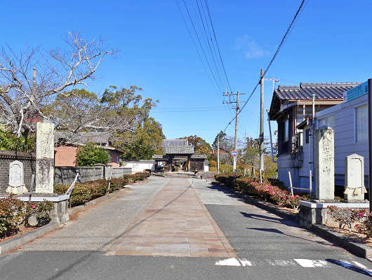 交差点を県道238号へと右折してさらに1kmほど走ると、道路の両側に石塔が立って、路面が石畳になった神社の参道のような道が右側に見えてくるのでここへ車で入りました。