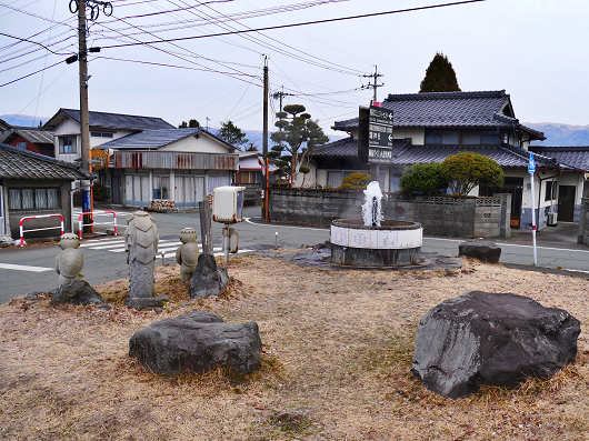 車を停めたところから撮影した「ポケットパーク 湧水」です。交差点の角にあるとても狭い公園ですが、大きな石などを配置していて、円筒形の構造物からは湧水が自噴しているのも見えました。