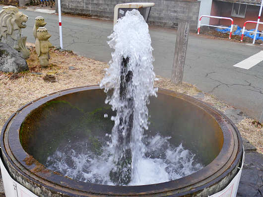 すぐ近くまで行って眺めてみると、円筒の中央部にあるパイプからはすごい勢いで水が噴き上がっていました。この湧水が出ているパイプは2mほどの高さがありましたが、まるで噴水を見ているようですね。
