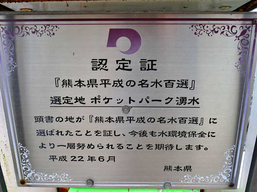 ここには認定書と書かれた看板もありましたが「役犬原の自噴湧水群」は熊本県平成の名水百選にも選ばれているようですね。熊本県は阿蘇山があることなどから火の国とも呼ばれていますが、阿蘇盆地は火の国でもあり、水の国でもあるんですね。