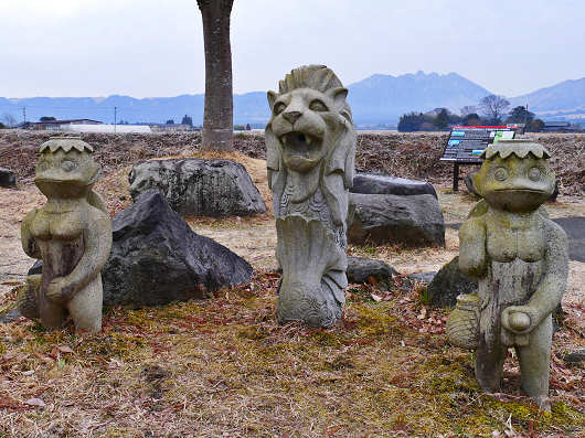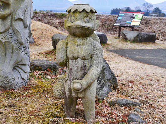 男性のカッパ像を見たら、左手でシンボルを握ったアダルトティックな像でした。大人が見ればだだのユニークな像ですが、ここは車も人も多く通る県道沿いなので、こんな像は子供には見せられないですよね(笑)