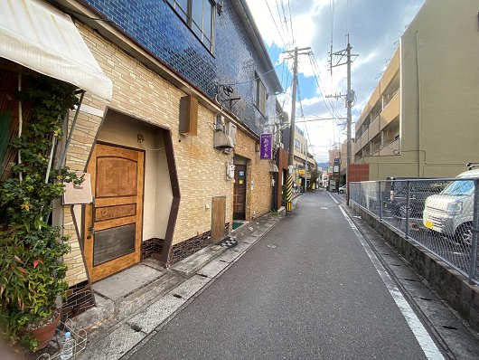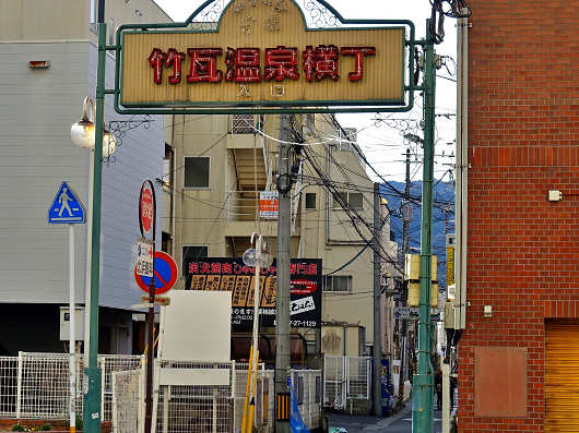 画像は別府市北浜の「竹瓦温泉横丁」です。別府市北浜といえば湯の町別府でいちばんの歓楽街で、狭い路地のような通りが縦横に走っていて、多くの飲食店などがありますが、モーニングサービスをいただくお店は、この狭い路地のような通りを入ってすぐのところにあるバーです。