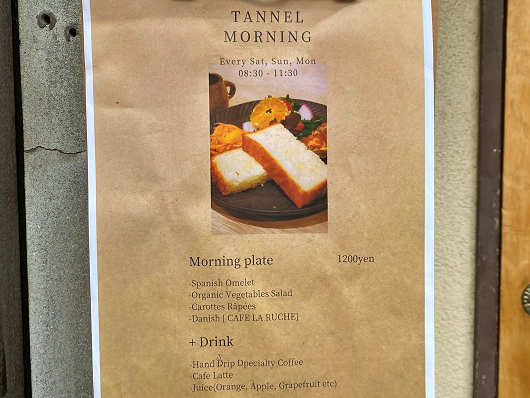 扉の横には「タンネル モーニング」と横文字で書かれた紙が貼られていますが、これも私たちが着いた時には出されてなかったんですよね。