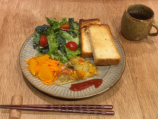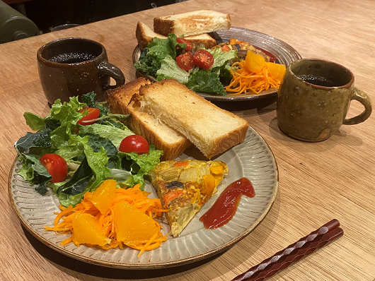 しばらく料理を作っているマスターと楽しく会話をしていると、料理ができたようでカウンターの上にこの日のモーニングが運ばれてきました。バーで提供されるモーニングサービスってどんなものだろうかと興味津々でしたが、見た目はいたって普通で、野菜たっぷりのヘルシーで美味しい料理でした。