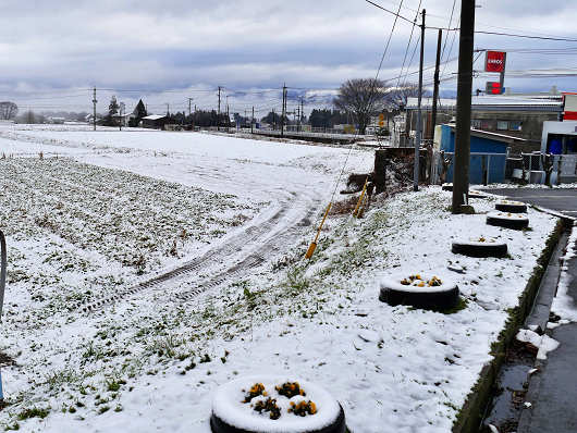 行きにここで休憩をした時には、周辺の畑はこの様に一面の雪化粧をしていましたが・・・