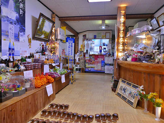暖簾を潜って館内へ入るとスリッパがズラリと並べられて、その両側にはお土産などがたくさん置かれていて、その奥に立ち寄り湯の受付を兼ねたフロントがある、昔ながらの湯治湯って感じのお宿だったので、これで口コミの評価が下がっていたのかも知れませんね(笑)