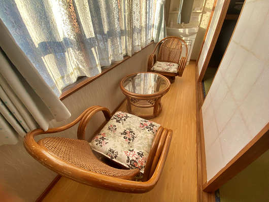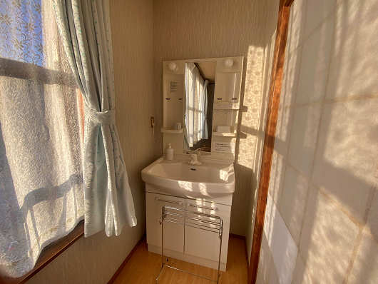 広縁には洗面台が置かれていました。これもちょっと古いお宿ではよくある配置ですよね。私たちも最初は口コミ評価を見て、半分は怖いもの見たさ?で覚悟して訪れましたが、いい意味で期待を裏切られました(笑)