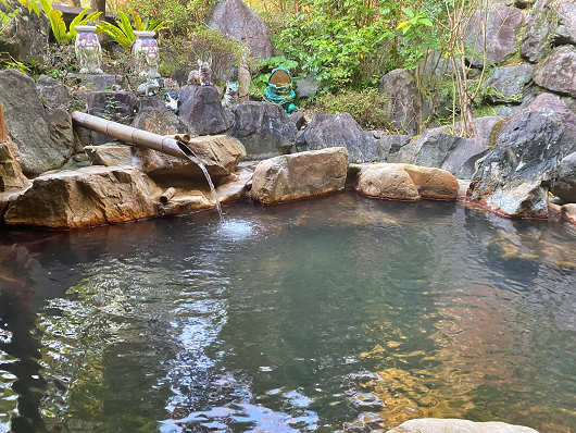 部屋でしばらく寛いだらお風呂へ行きました。画像は露天風呂ですが、べっぴんの湯(美人湯)の通りお肌がツルツルになるとても気持ちのいい温泉でした。まだ夕食前ですがこの時点ですでに大満足でした。