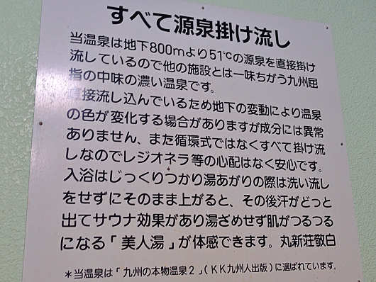 脱衣所に掲示されていた温泉の説明書きです。源泉かけ流しで全く手を加えていないのが温泉好きにとっては堪らないですね。