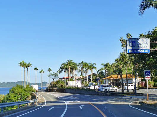 油津を出発したら海岸沿いの国道220号を南下して、国道220号が日南市目井津(めいつ)から山の中に入ると、間もなく国道448号へと左折して峠をひとつ越えると再び海が見えてきます。