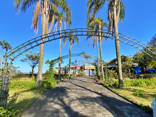駐車場に車を停めたらさっそく物産館へと向かいましたが、いつ訪れても見事なグリーンやカラフルな南国の花が咲いているアーチには全く植物がありませんでした。この時季にここを訪れるのは初めてですが、南国の宮崎県でも冬はこんな状況なんでしょうか?