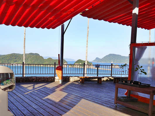 一般的な道の駅は国道沿いにあって、展望台へ登れば景色のいいところもありますが、この道の駅は物産館の正面眼下に海が広がっているので、物産館の前から直接展望台のような眺望を望めます。