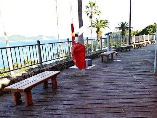 この時季はさすがに屋外で飲食をしている人はいませんでしたが、ここにはベンチや望遠鏡、日除け、雨除けのテントもあるので、暖かい時季にはここで海を眺めながら食事をしたら何を食べても美味しいでしょうね。