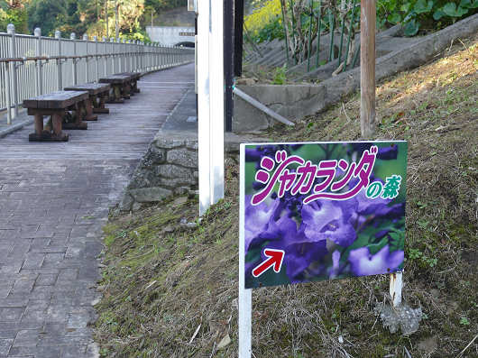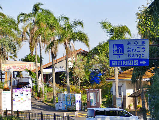 ここがこの日最後の目的地の「道の駅 なんごう」です。ここへ着いたのは3時前ですが、道の駅の裏手にはジャカランダの群生地にもなっている山があるので、日の短いこの季節にはこの時間でも道の駅の標識はすでに山の陰になっています。