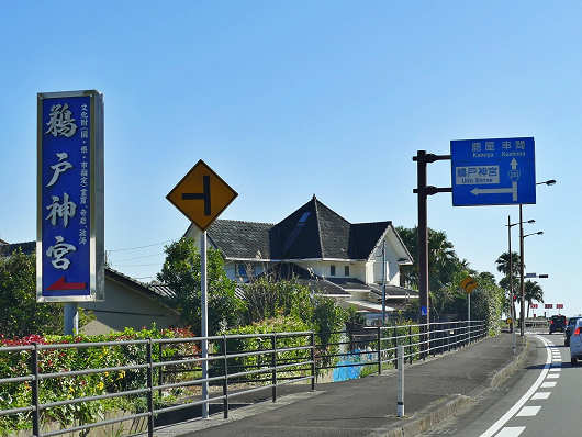 国道220号をしばらく南下していると「鵜戸神宮」の看板が見えてくるので、この先の標識のあるところから左の道へと曲がりました。