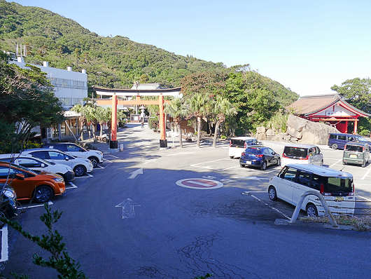 道路は途中から山の中へ入って行き、峠を越えると鵜戸神宮の二ノ鳥居と駐車場が見えてきたのでここに車を停めました。