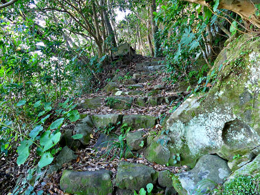 私が進んだ道はちょっと荒れた歩き難い石段がしばらく続いて、なかなか摩崖仏が現れてきませんでした。