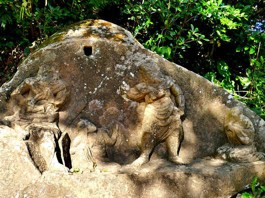 りゅうママが進んだ先には不動明王像がありましたが、分かれ道からは石段をわずかに登ったところでした。この不動明王像は高さが1m27cmあって、ほとんど風化していなくてとてもきれいな姿でした。