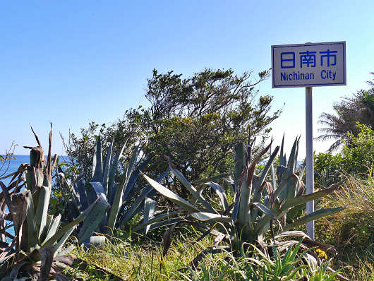 思わぬ光景を目にして気になりながらも「いるか岬」を出発したら、再び日南市の標識が見えてきました。翌日お家へ帰ってから地図で確認をしたら、こちらの標識は日南市へ入ってからの標識で、最初に見た標識は宮崎市に立っている標識のようでした。