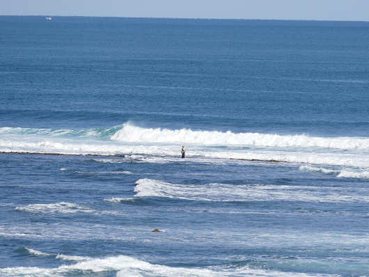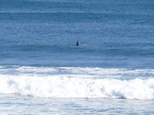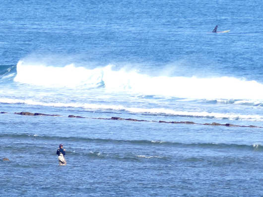 そしてこの釣り人のいる沖合を見ると、サーファーらしき人も小さく見えました。