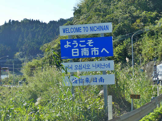 しばらく景色を眺めながら走っていると、この様な標識が見えてきて、宮崎市から日南市へと入りました。