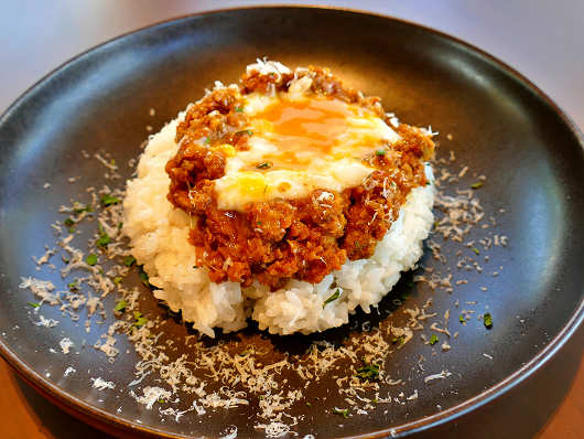 半熟卵は崩していただきました。普段はあまりキーマカレーは食べないんですが、このキーマカレーは思っていたよりもかなり美味でした。