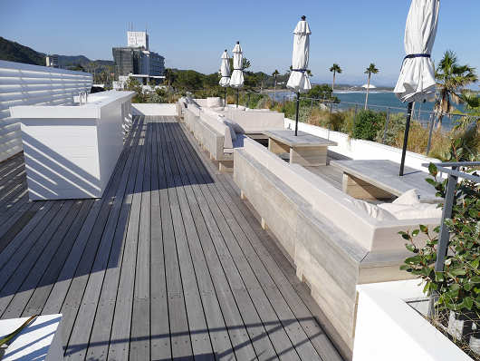 屋上からは青島海岸でサーフィンを楽しむ人たちや、その沖の方には青島も見えました。この施設はまだオープンしたばかりで、周囲にはまだ工事中のようなところもありましたが、今後青島観光の中心施設としてどのように変化するのか楽しみですね。
