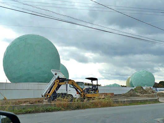 そして道路の反対側を見ると別の球体が見えました。球体はフェンスで囲われた中にあって、その周辺に見える建物や門などの様子から自衛隊(防衛省?)に関連する施設のようでした。