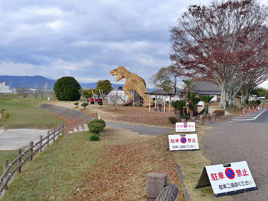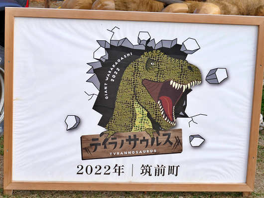 わらかがしの足元にはこの様な看板もありました。今年のテーマは「ティラノサウルス」なんですね。