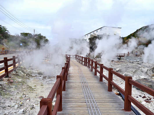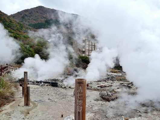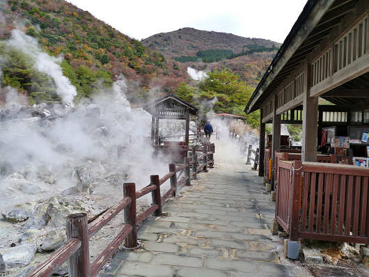 雲仙地獄はじっくりと見物すれば一時間以上かかりますが、次の予定もあるのでここから駐車場へと引き返します。雲仙地獄の入口には地獄に面して窓のあるホテルもあるので、いつかこのホテルに泊まって部屋からゆっくりと雲仙地獄を眺めてみたいですね。