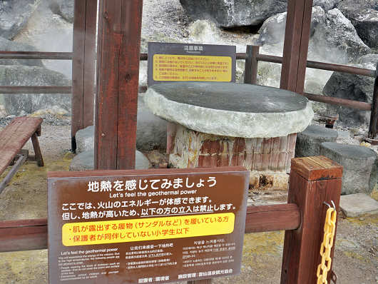 ここには「地熱を感じてみましょう」と書かれた休憩所のようなところもありました。