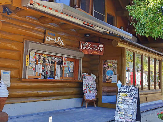 りゅうママが向かったのは物産館の隣にある山小屋風の建物の「ぱん工房 ぱーしもん」です。