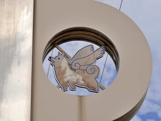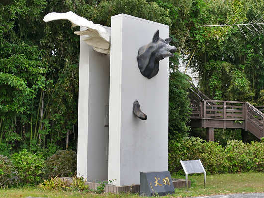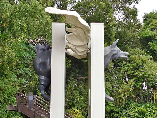 ここにはこの様な芸術作品のような、高さが4~5mはありそうなちょっと変わった姿をした巨大な羽犬の像がありました。