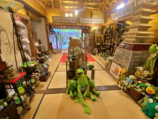 本堂の向かって右側には「カエル部屋」というのがあって、無数のカエルがいました。ここも靴を脱いで自由に見物ができるそうです。