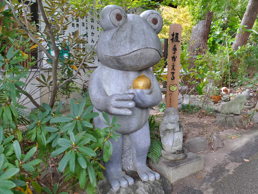 山門のすぐ横には等身大ほどのサイズの「握手かえる」と書かれた、立っているカエルもいました。何だかとても親近感を覚えたのは私だけでしょうか?(笑)