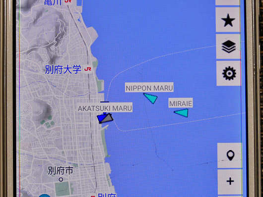 その後も航跡を辿っていたら「帆船 みらいへ」は、別府国際観光港へ向かっていましたが、画面には「帆船 日本丸」も表示されていました。この時はもう夕方近くだったので、これから別府へ向かっても暗くなりそうだったので、翌日の朝に別府国際観光港へ向かうことにしました。