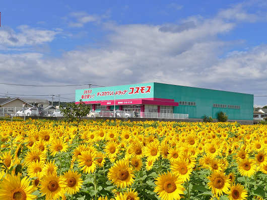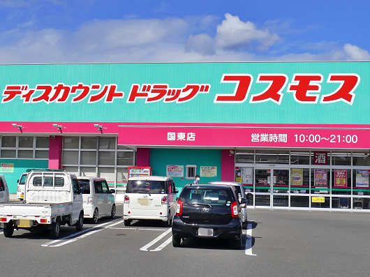 ここが「ドラッグストア・コスモス 国東店」です。道の駅からは僅かな距離なので歩いても行けますが、観光案内所の人の話では、ヒマワリ観賞をする人はここに車を停めてもいいそうです。