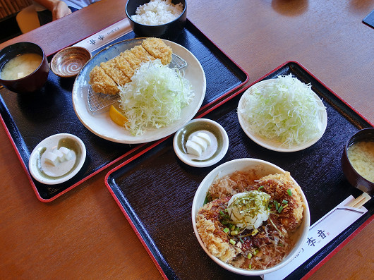 ここは人気店なので私たちは開店時間の11時30分よりも早く訪れて入口で開店を待ちましたが、国道沿いには ゛当店イチオシ かつ丼 ゛ と書かれた幟が立てられていたので、まだ注文するものを決めていませんでしたが、メニュー表を見なくてもこれに決まりですね(笑)