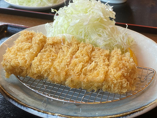 ロースかつは画像を見ても分かるように、衣が白っぽくて揚げ足りないのかな?って感じに見えますが、つい先日テレビで東京に白いとんかつのお店があるのを見ていたので、これが低温でじっくり熱を通した噂の白いとんかつなんだなと思いました。